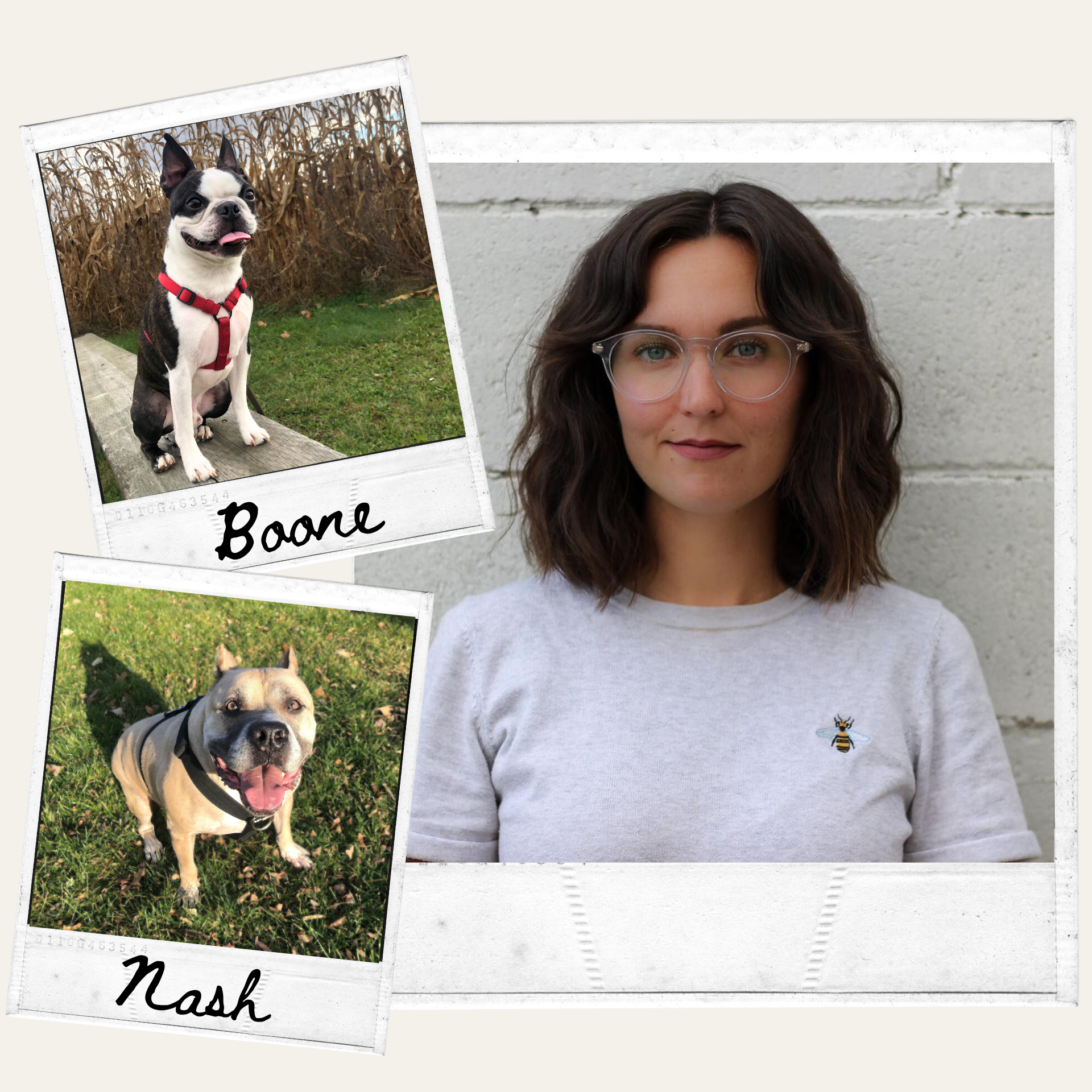 In her free time, you can find Sarah learning and trialing with Boone in Urban Rat Race and nosework, taking both dogs for hikes, digging through old thrift or antique stores and somehow recalling every lyric while singing along to Backstreet Boys and *NSYNC with her nieces.